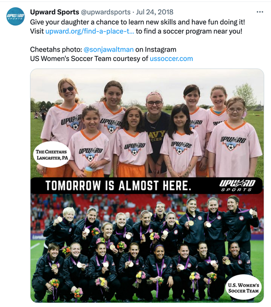 Social Media Examples • June 27 2023 Upward Sports Twitter (USWNT) Upward Sports Twitter Post (July 24, 2018)